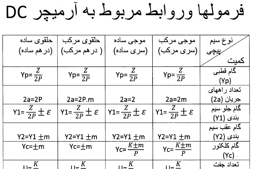 فرمولها وروابط مربوط به آرمیچرهای DC